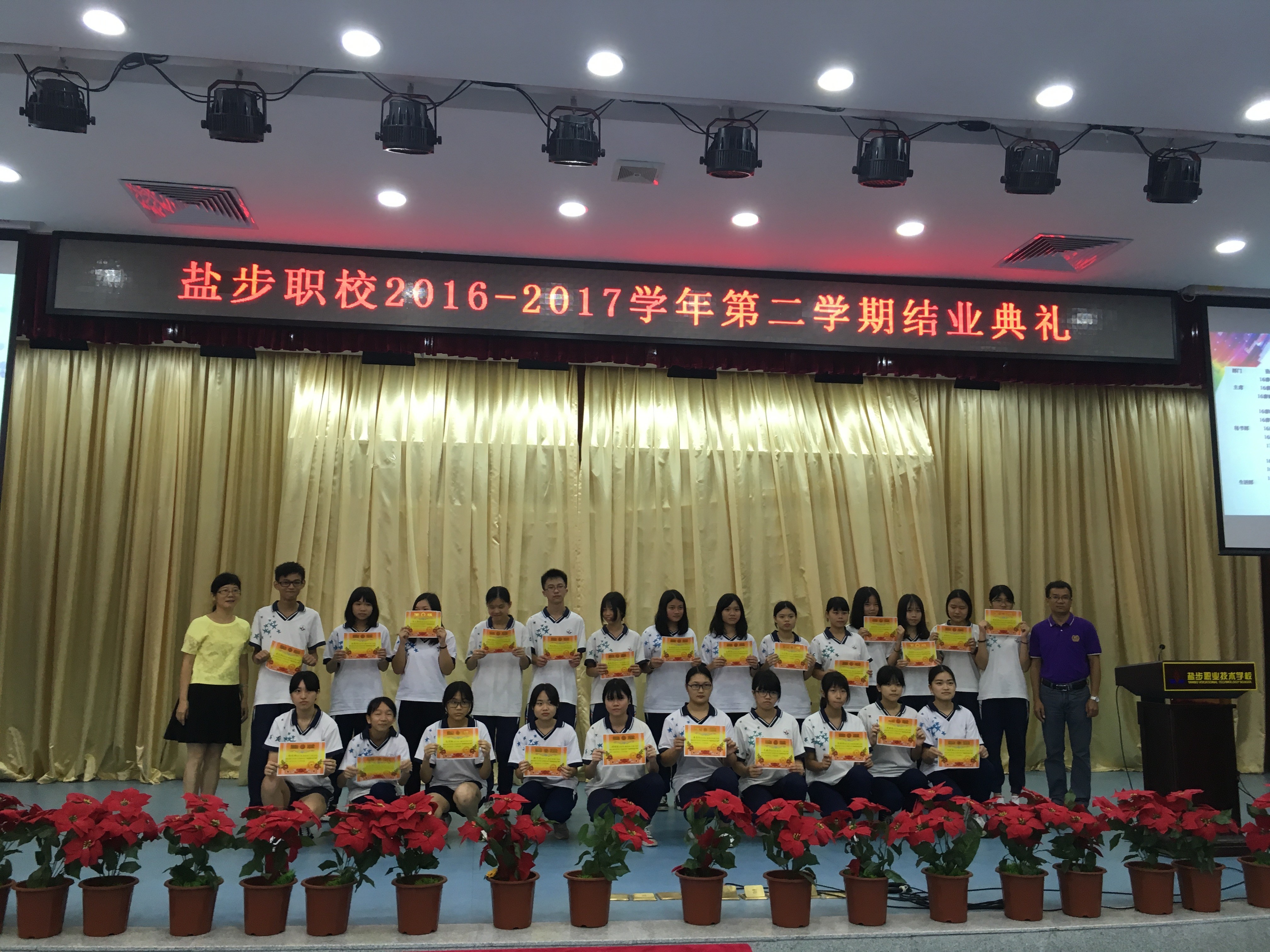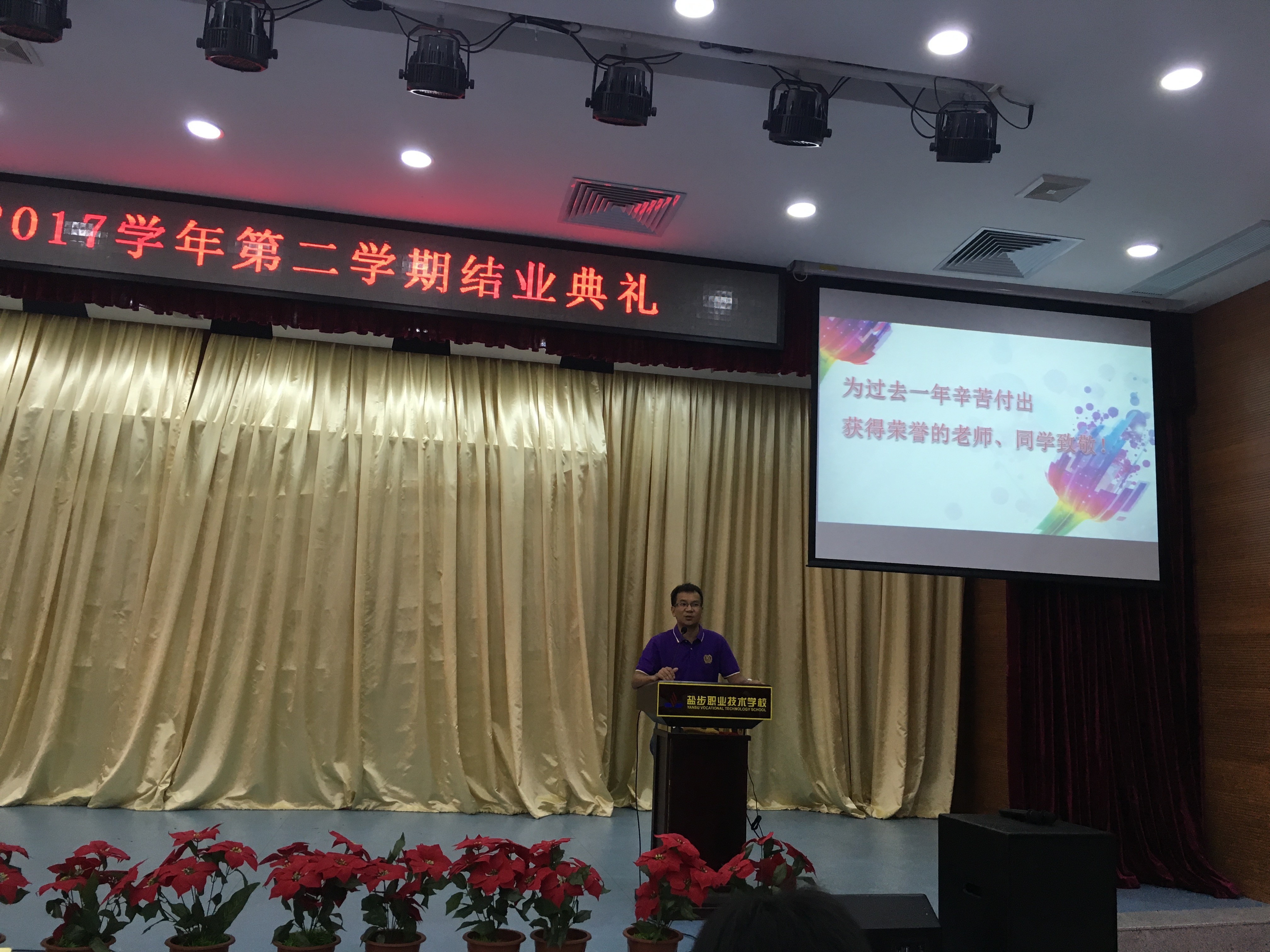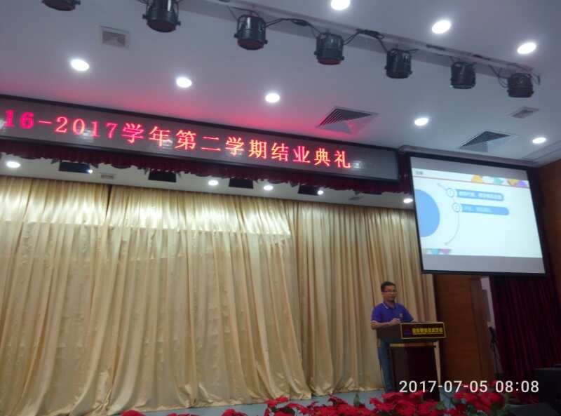 2017年7月5日上午八点,盐步职校财经部2016-2017年度第二学期期末结业典礼在报告厅隆重召开。会议由德育部长张兆添老师主持,会上张部长对自己2016年度分管的工作进行总结分析,并对2017年度工作做了详尽的工作计划和部署。本次总结会还邀请教师代表杨卫东老师进行讲话,杨老师从班级文化,校园生活和学习等方面总结了本学期各班的表现,并表扬了表现优秀的班级和学生。