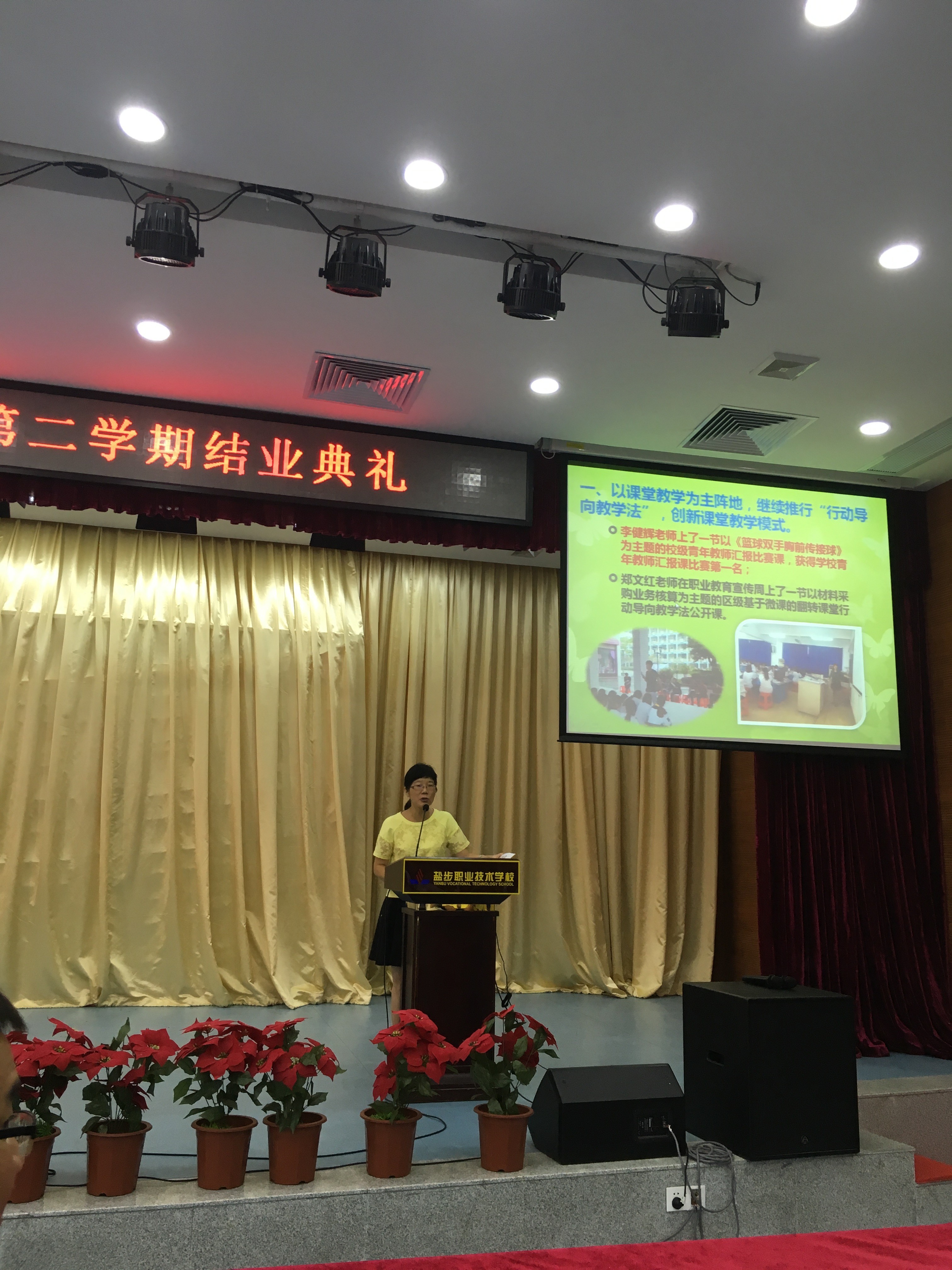 随后教学部长郑文红老师总结本学期的各项工作完成情况,从教学公开课、校企合作、技能考证、就业、教师教研等方面对表现优秀的师生进行全面细致的总结。