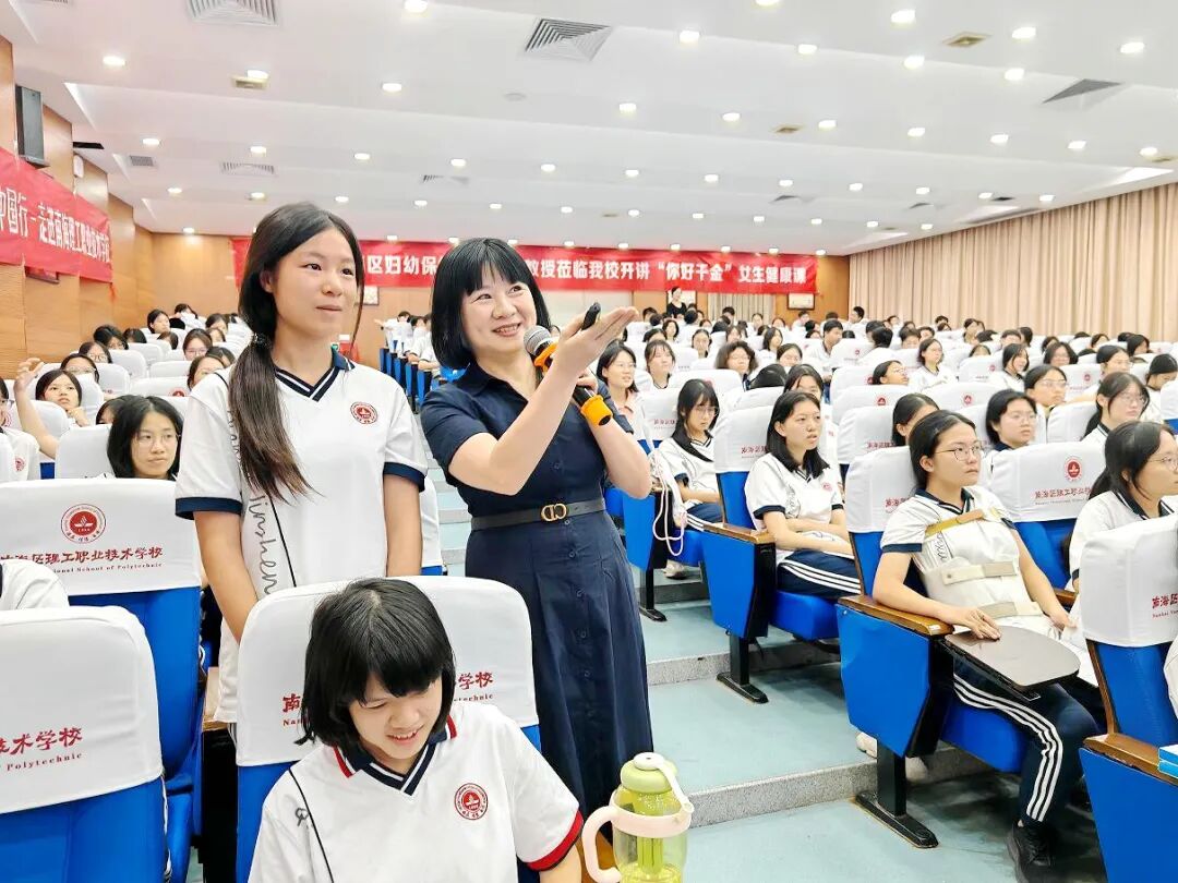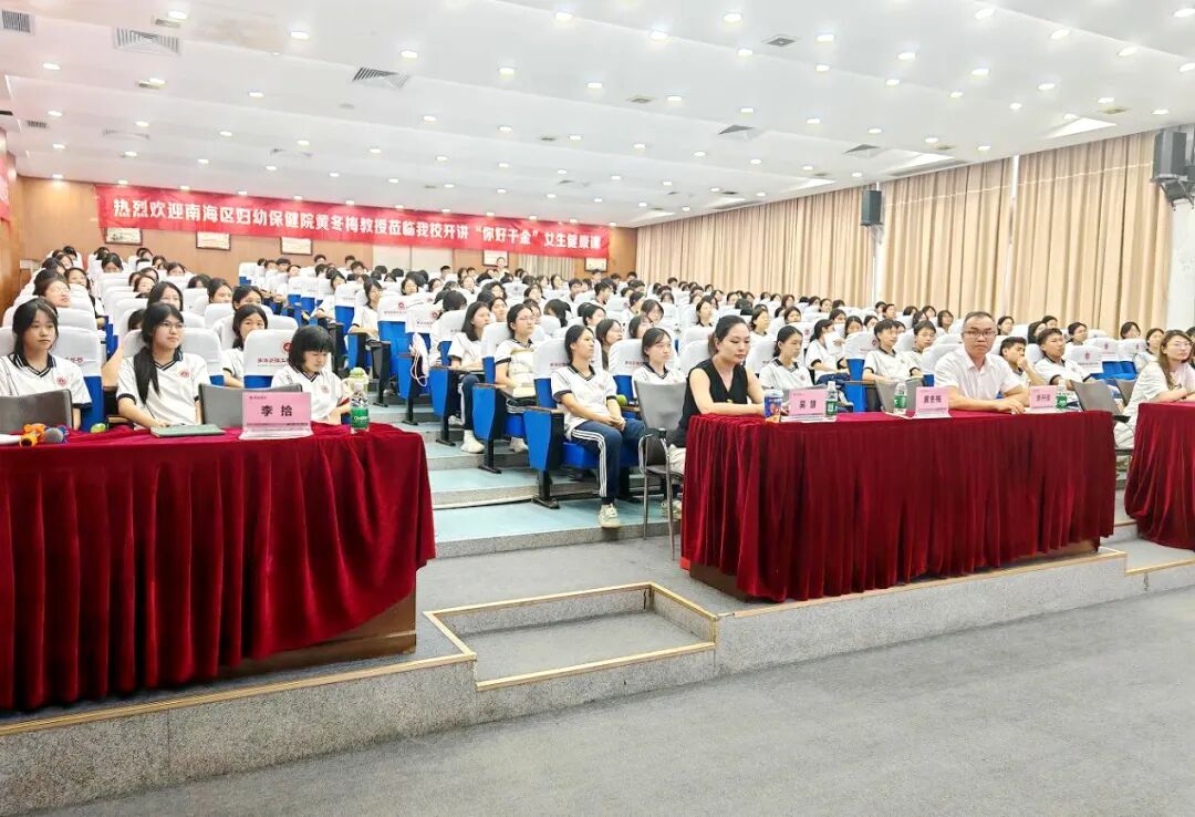 本次活动邀请了南海妇幼保健院黄冬梅教授担任主讲嘉宾。出席活动的还有南海理工李开强副校长、千金药业有限公司吴慧经理与李鹃女士、服装部教学主任吴茜老师、德育主任李拾老师、以及各班班主任和科任老师等。