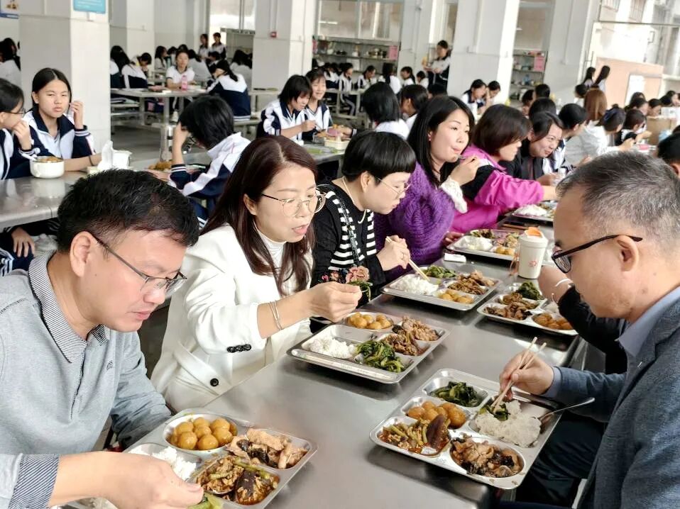 为直观感受学生日常就餐体验、实地监督校园餐饮服务质量,家长代表与学校领导一同走进学生饭堂开展陪餐活动,陪餐结束后所汇总的意见与建议,将成为后续优化菜谱、改进服务、提升管理的重要依据,真正实现了 “监督在过程中,改进在细节里” 的良性循环。