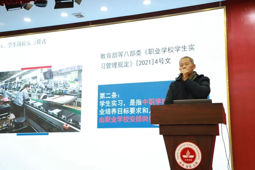 随后,曾文主任就本次岗位实习的具体政策、实习单位的选择标准与要求向家长们进行了详细解读。聚焦实习期间的学生安全管理,从岗位安全规程、日常生活防范、交通安全及心理健康等多个方面对家长进行了重点提醒,要求家长与学校保持紧密沟通,共同筑牢学生实习安全防线。