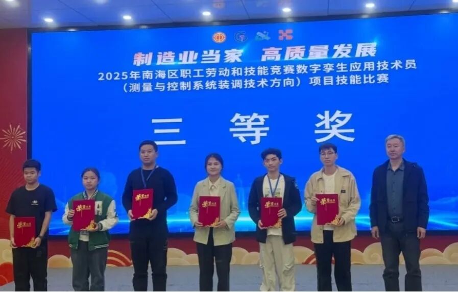65) 11月下旬,南海理工叶玉萍、葛小雯两位教师在2025年南海区职工劳动和技能竞赛数字孪生应用技术员(测量与控制系统装调技术方向)项目中,分获二、三等奖。