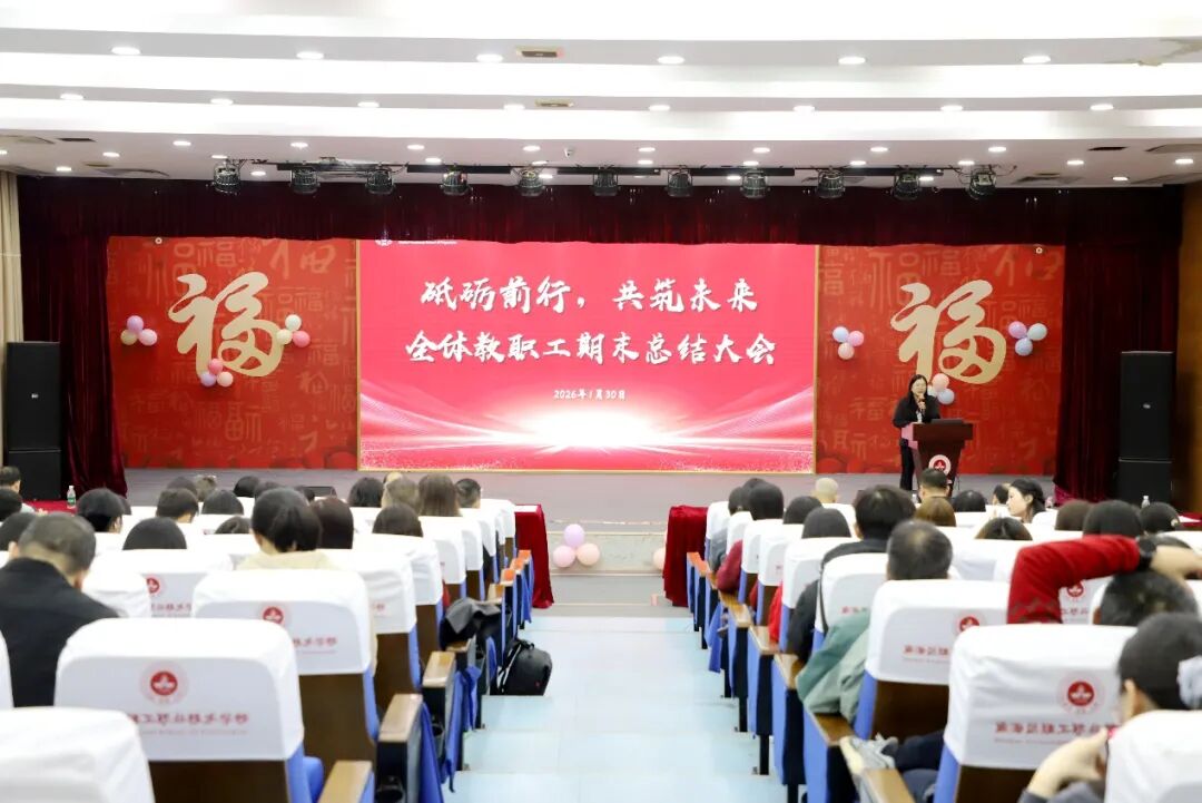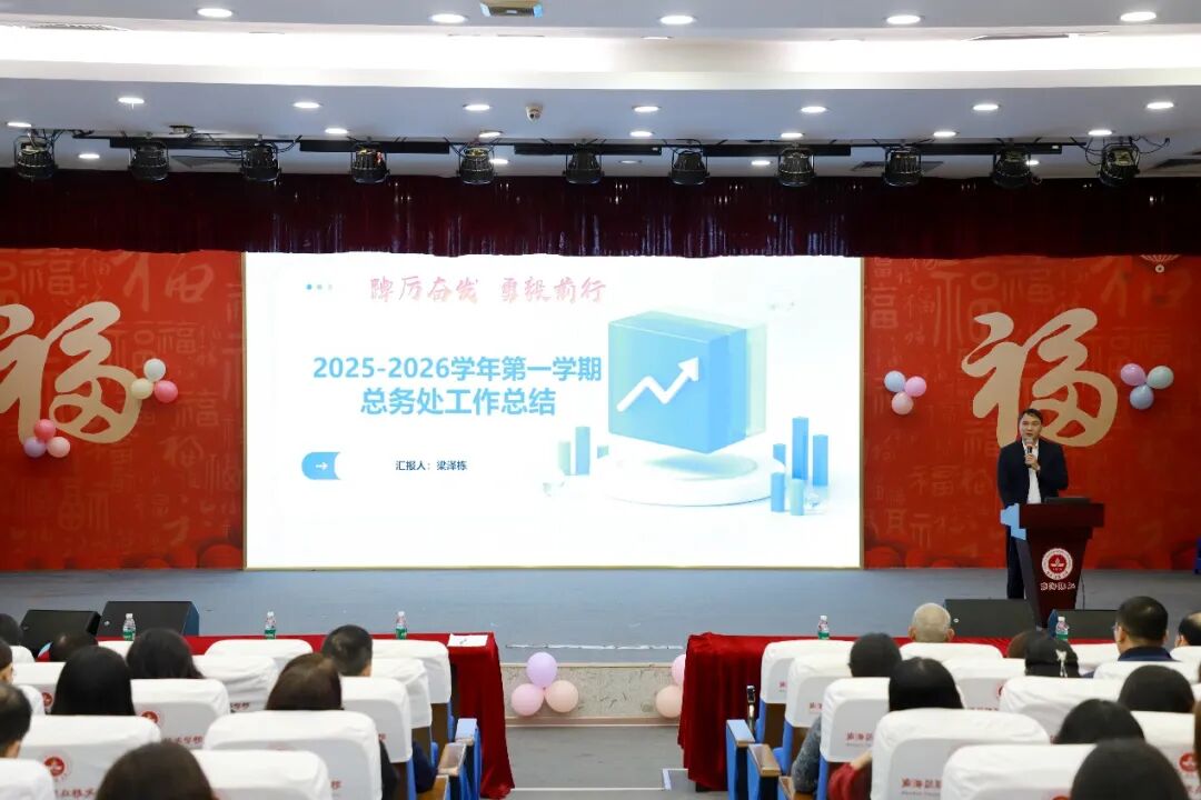 春华育桃李,秋实满校园。2026年1月30日上午,南海区理工职业技术学校2025-2026学年度第一学期全体教职工期末总结大会在学校报告厅隆重举行。全体教职工齐聚一堂,回望本学期奋进历程,梳理各项工作成效,凝聚育人同心,擘画新学期发展新篇。大会伊始,一段 2025 年大事记视频拉开帷幕,带领全体教职工重温学校各领域发展的精彩瞬间,回顾全体南海理工人的付出与坚守。