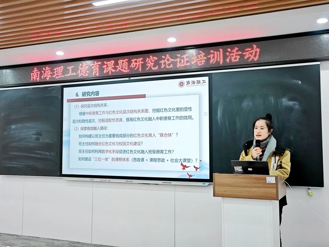 为精准把握德育课题研究方向、提升育人队伍教研能力,推动学校德育工作高质量发展。1 月 30 日,南海理工在思政智慧教室组织召开德育课题研究论证培训会。本次活动特邀广东省中职学校德育研究与指导中心主任汪永智担任评审组长,广东技术师范大学马克思主义学院副教授张秀峰,佛山市教育局德育专干邱月玲组成专家评审组。学校陈俊清校长、李开强副校长、德育处蔡华主任以及课题主持人、课题组成员共同参与。